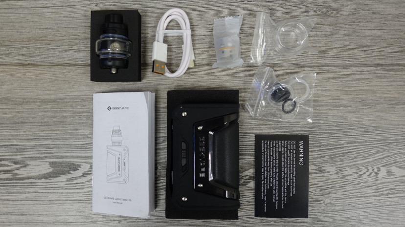 О комплекте говорить как будто не имеет смысла, ведь обзор у нас именно Боксмода GeekVape Aegis L200 Classic. Поэтому заострять внимание не нем не будем.