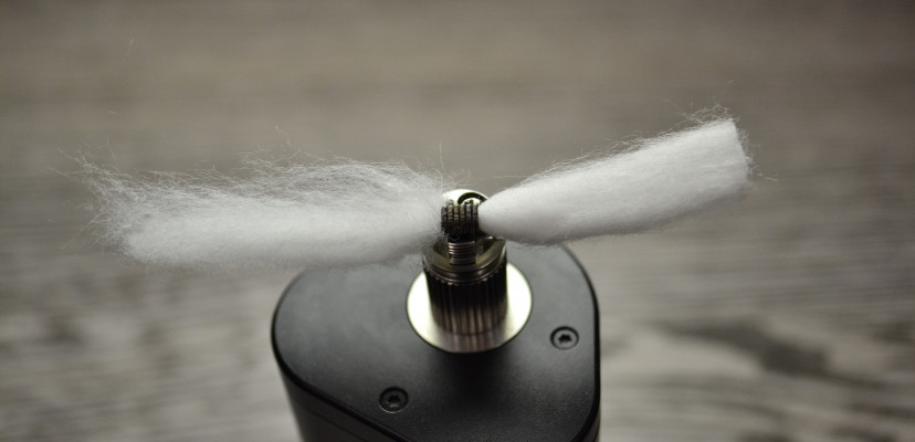 В качестве фитиля мы используем Bacon Cotton Prime, он хорошо смачивается и отлично проводит жидкость, так что если ваты будет больше, чем нужно, он простит эту ошибку и, скорее всего, не будет давать гарики.