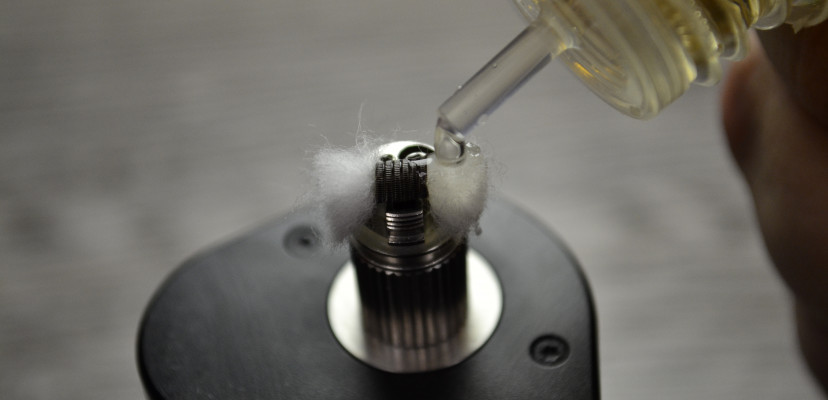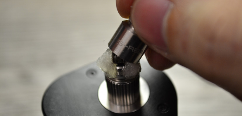 Перед нем как все собирать обратно, нужно смочить вату в РБА базе. Жидкость с подобными обслужками лучше использовать с соотношением компонентов 50VG/50PG – стандартную для Под-систем. Она достаточно текучая, в отличии от других вариантов.